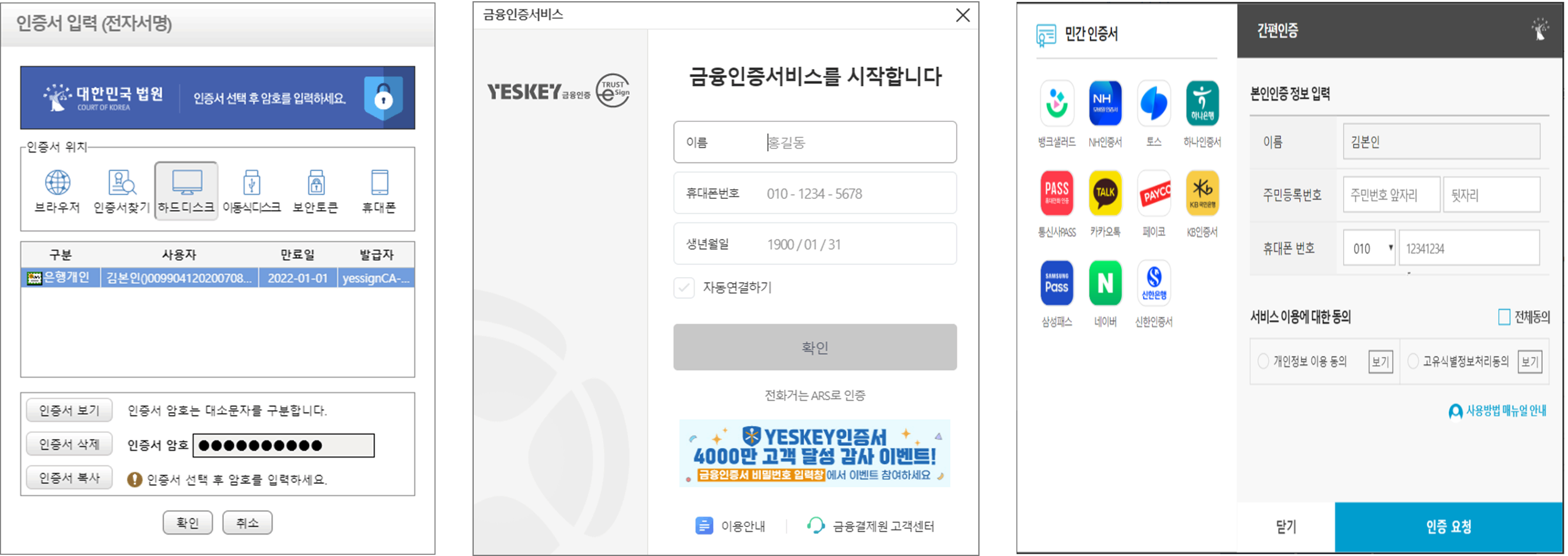 준비한 인증서를 선택후 인증절차를 진행합니다.