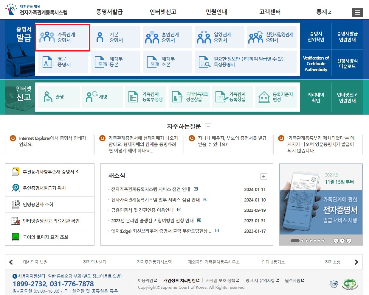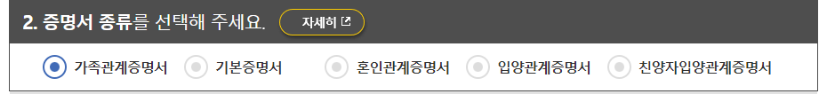 2. 증명서발급카테고리에서 가족관계증명서 선택