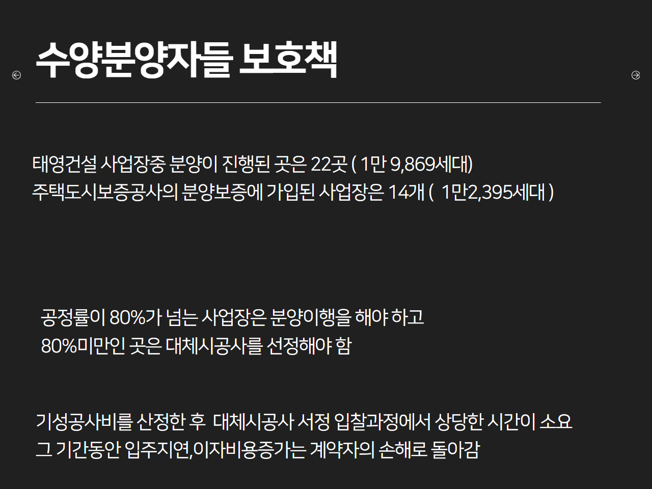 수분양자들의 보호책 수분양자들에 대한 보호책도 이루어질 것입니다.