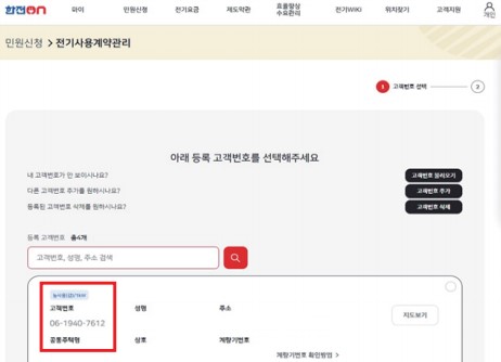 마이 전기사용계약관리 "고객번호 등록" 메뉴를 이용